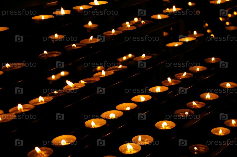 Свечи в нескольких рядах в церкви