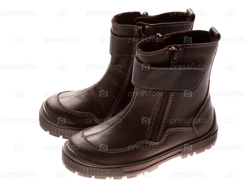 Детская зимняя обувь на белом фоне