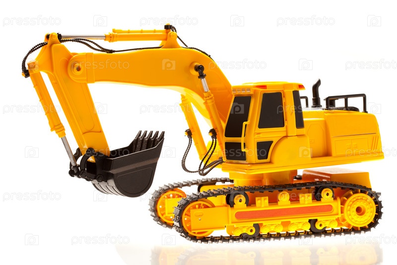 Модель экскаватора на белом фоне