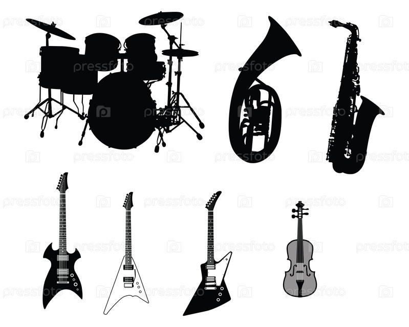 Набор различных струнных, духовых и ударных инструментов