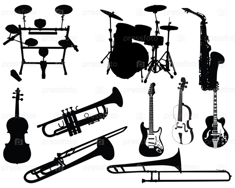 Набор различных струнных, духовых и ударных инструментов