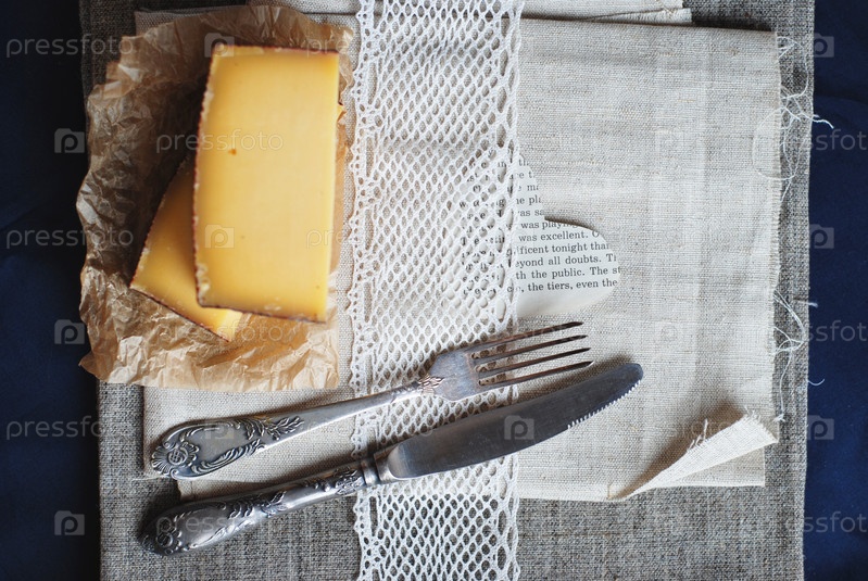 Сыр и вилка с ножом