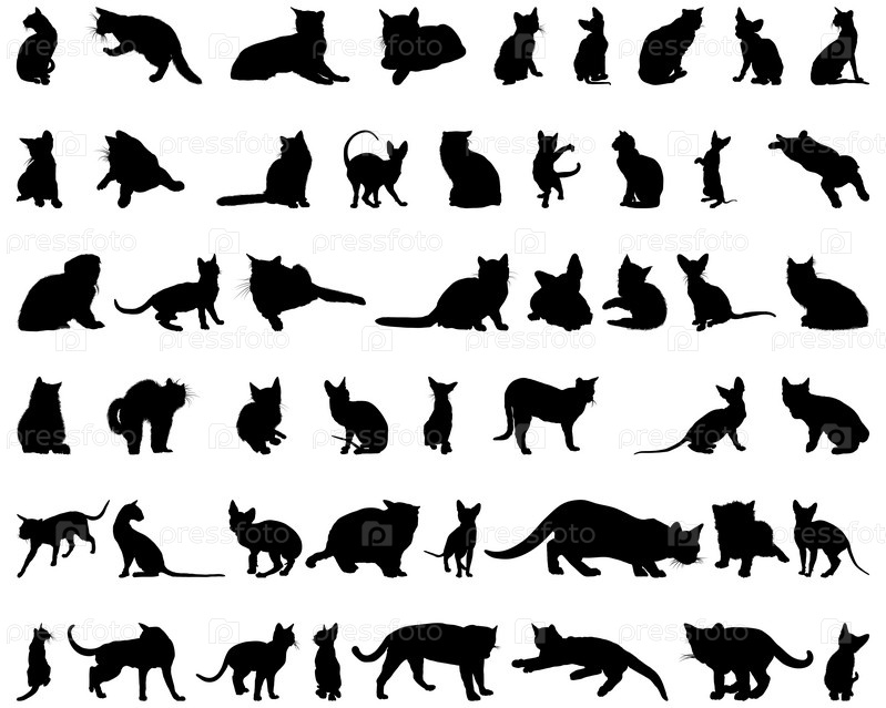 Силуэты кошек на белом фоне