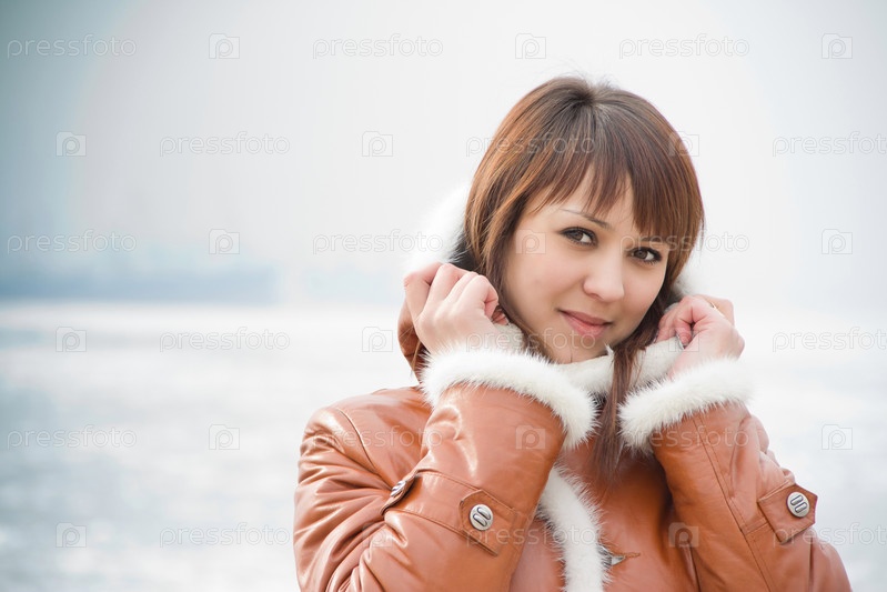 Красивая девушка с карими глазами. Зима