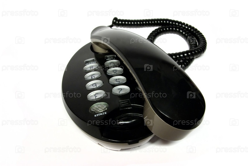 Стационарный черный телефон, изолированный на белом фоне