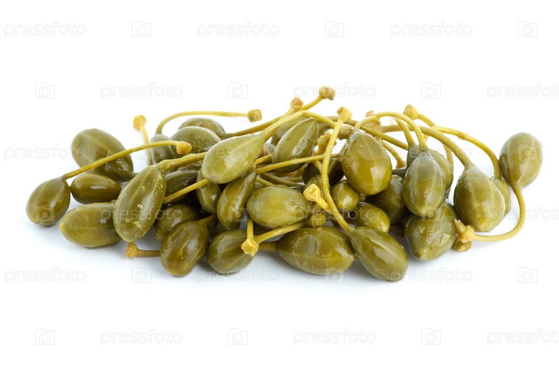 Маринованные каперсы на белом фоне