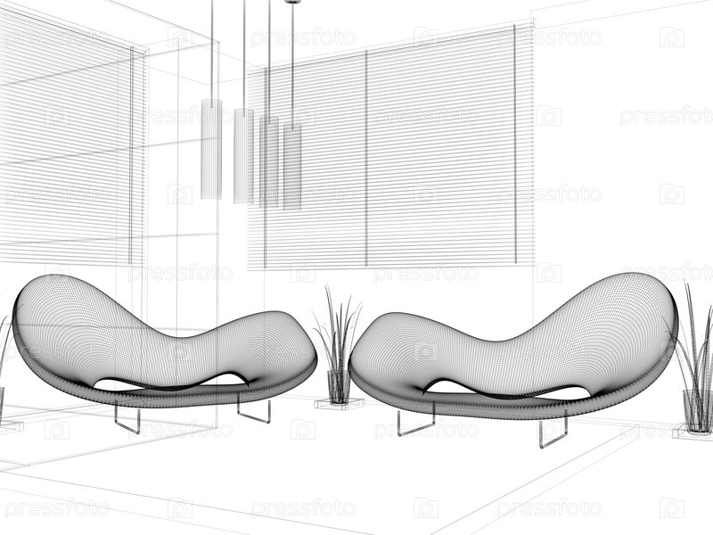 Современный интерьер гостиной, эскиз