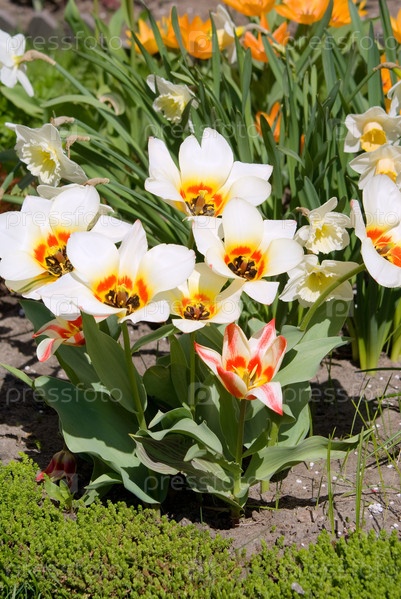 Белые тюльпаны в солнечный день