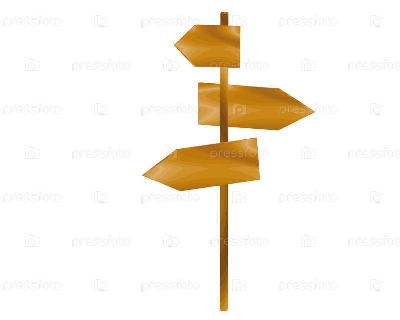 Три указателя разной формы на деревянном столбце