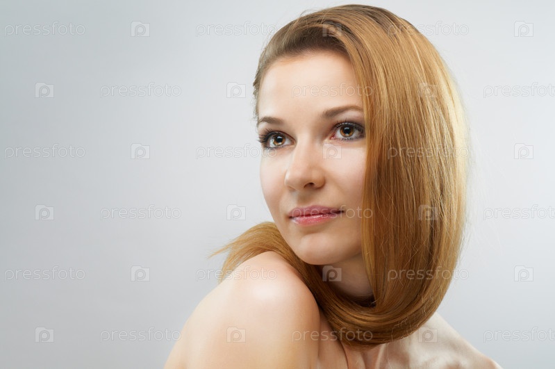 Красивая девушка на светло-сером фоне