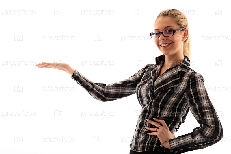 Молодая счастливая девушка в очках на белом фоне