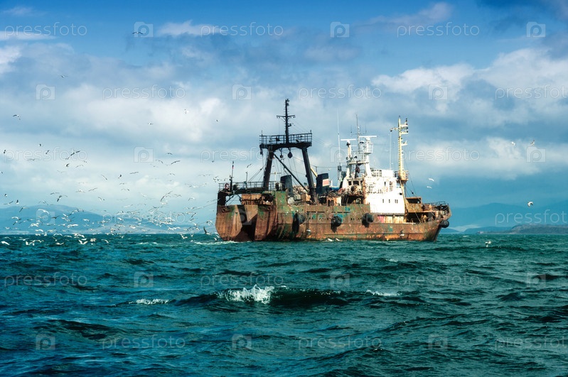Рыболовное судно во время промысла в Японском море