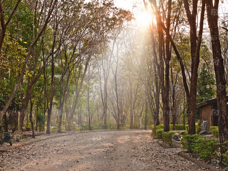 Дорога в парке, освещенная лучами солнца
