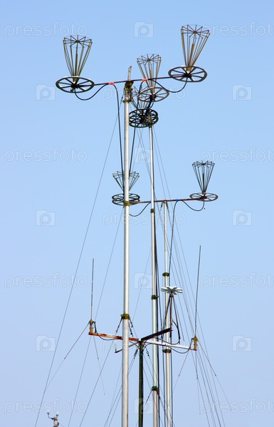 Телекоммуникационная антенна на фоне голубого неба