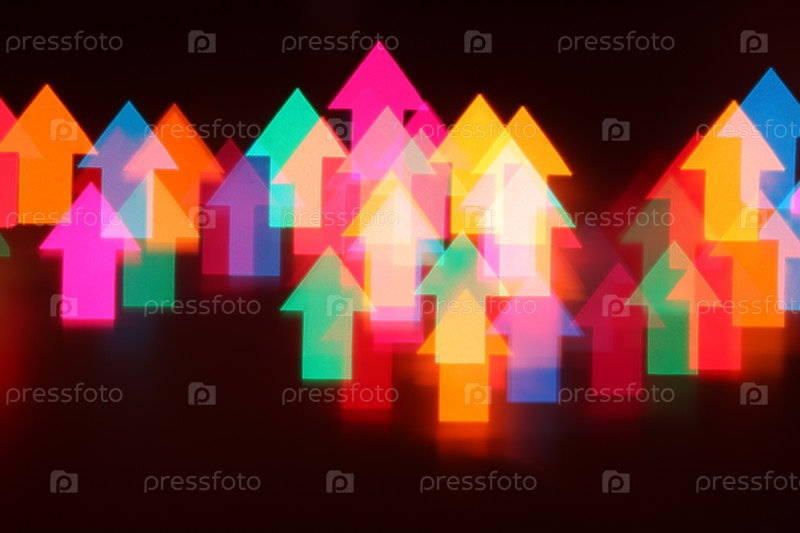Разноцветные светящиеся стрелки на темном фоне
