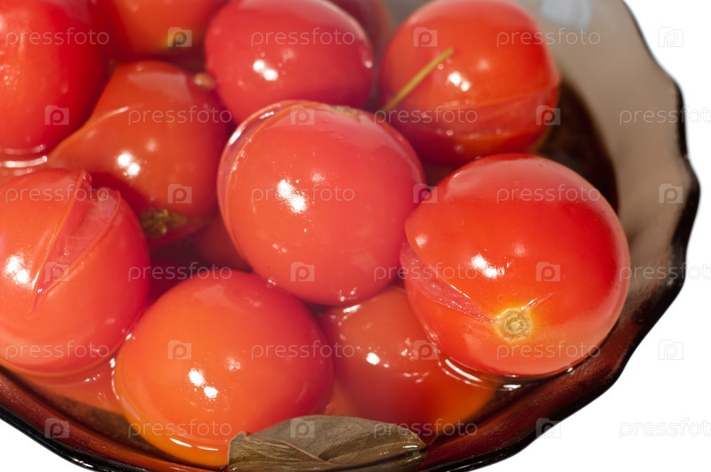 Томаты маринованные в стеклянной вазе