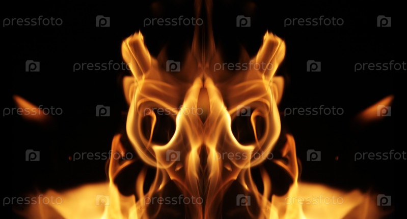 Оранжевые языки пламени в виде страшного зверя на черном фоне