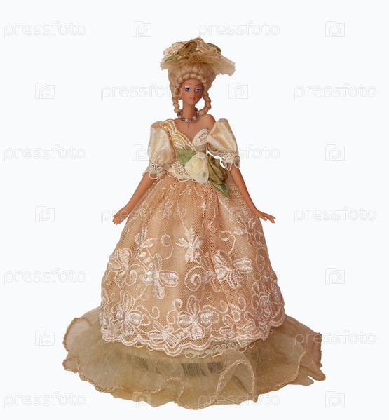 Фарфоровая кукла на белом фоне