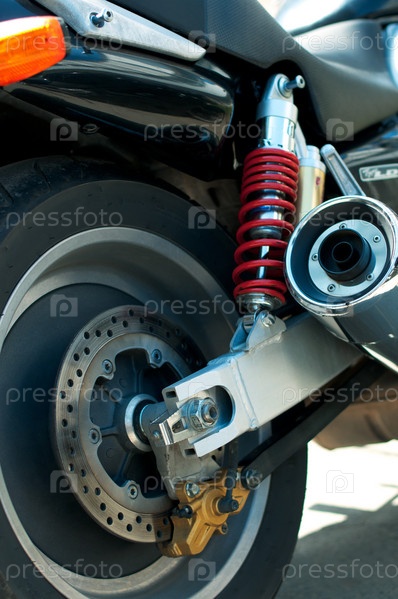 Задняя часть спортивного мотоцикла крупным планом