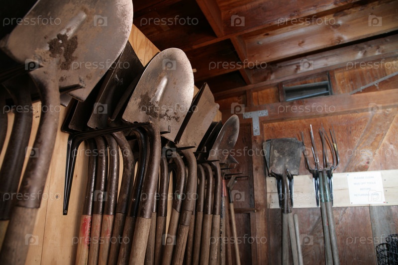 Садовые инструменты в сарае