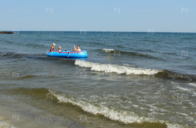 Мужчина с детьми в надувной лодке