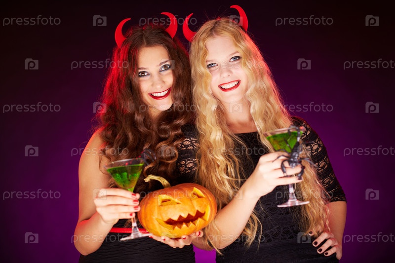 Две девушки в костюме ведьмы
