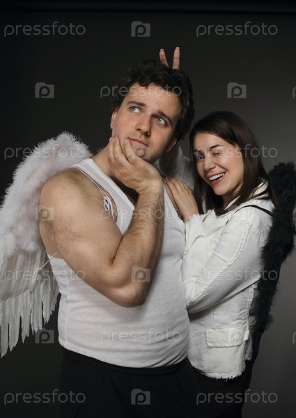 Мужчина и женщина с крыльями ангела на черном фоне