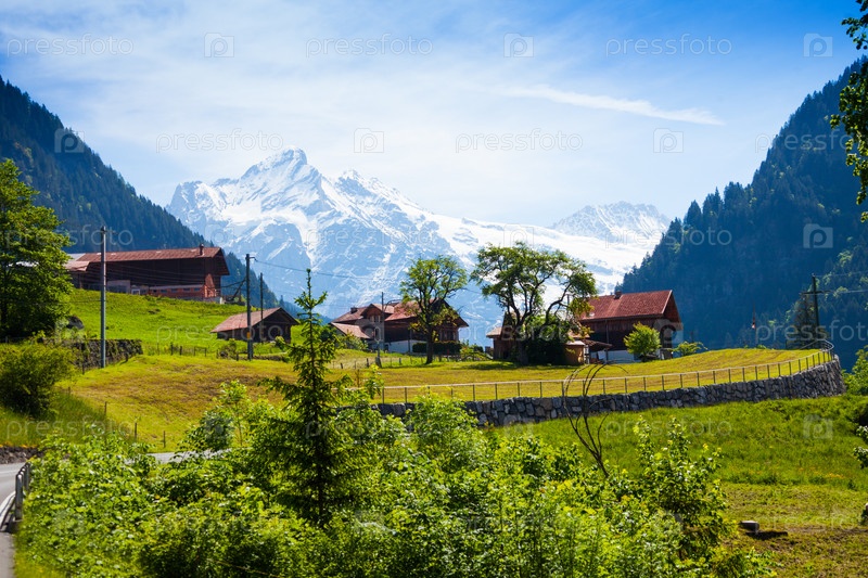 Дома и швейцарские горы