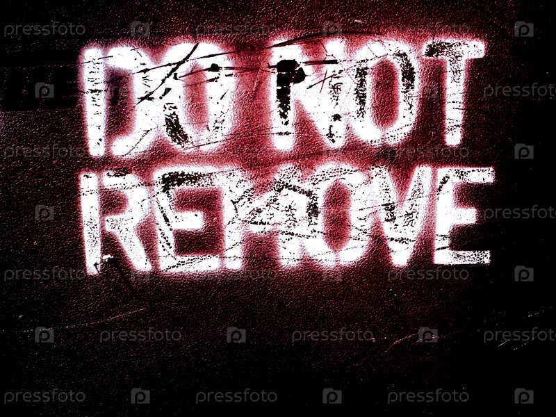 Яркая надпись "Не передвигать" по-английски на темной поверхности в царапинах