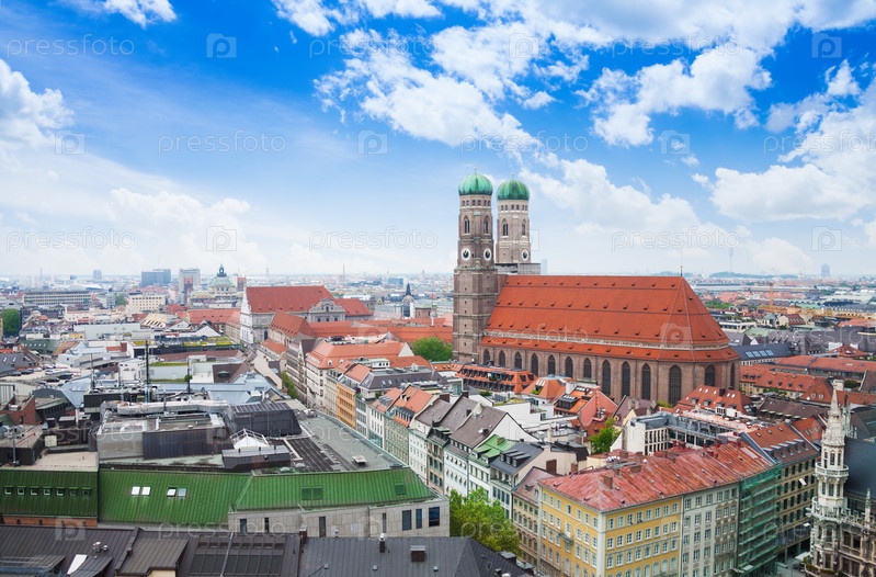 Фрауенкирхе, красные крыши в Мюнхене, Германия