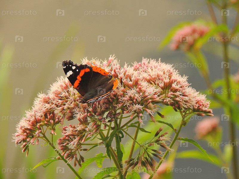 Бабочка Адмирал Ванесса Аталанта сидит на цвете