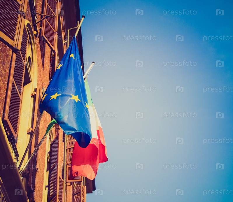 Итальянский флаг и флаг евросоюза