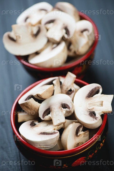 Хохломские миски со свежими шампиньонами