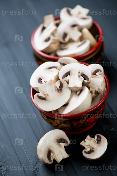 Хохломские миски со свежими шампиньонами