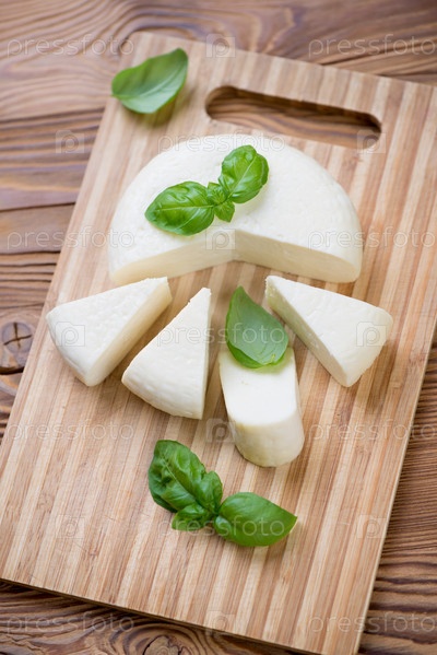 Адыгейский сыр и листья зеленого базилика