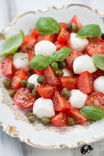 Салат капрезе с каперсами и базиликом