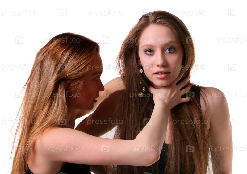 Девушка пытается задушить подругу