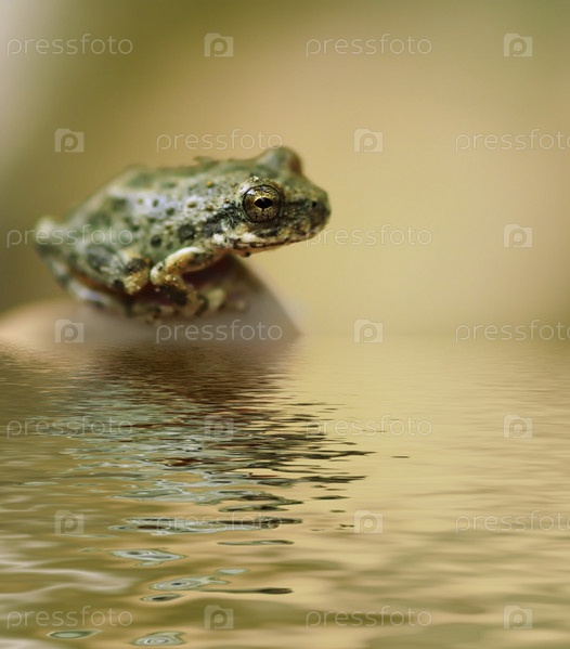 Зеленая лягушка сидит у воды