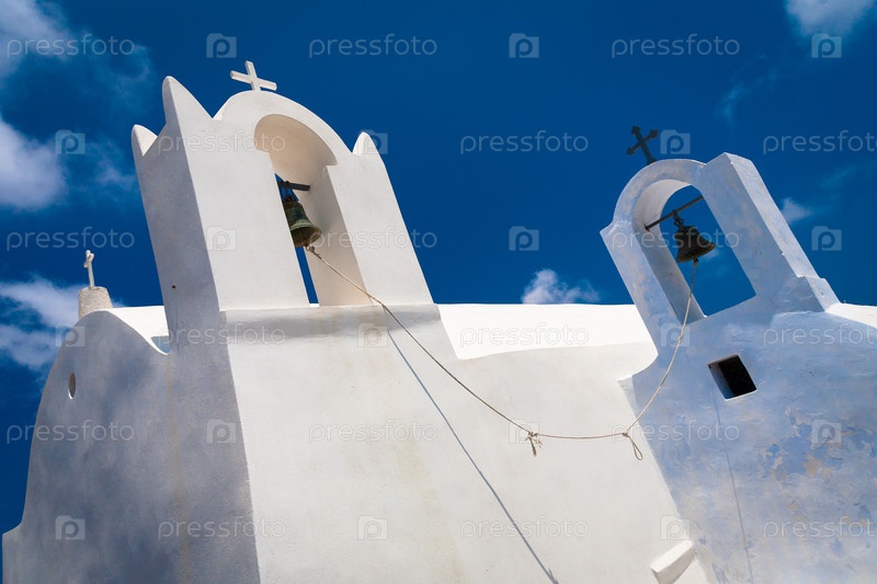 Фрагмент церкви с колокольней в Санторини