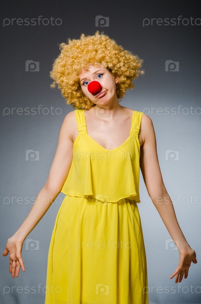 Смешная женщина в клоунском парике