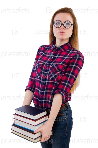 Смешной студент со стопкой книг