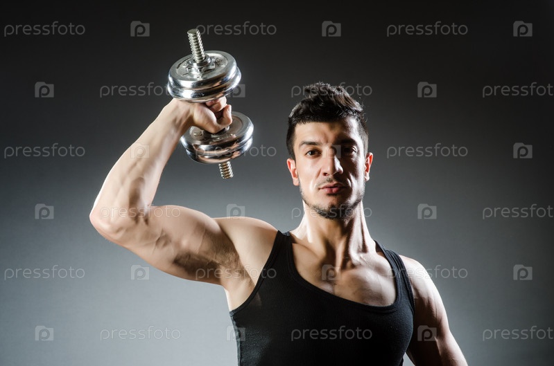 Культурист с гантелями