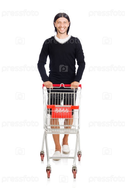 Мужчина с тележкой для покупок