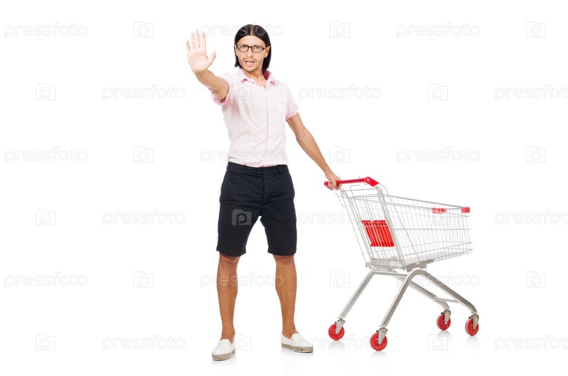 Мужчина с тележкой для покупок