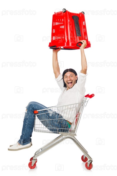 Мужчина с тележкой для покупок
