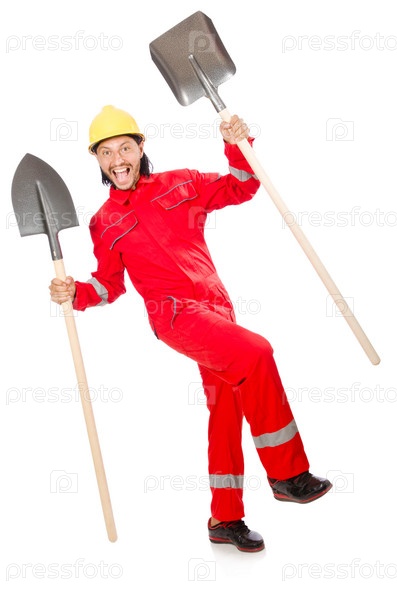 Человек в комбинезоне с лопатой