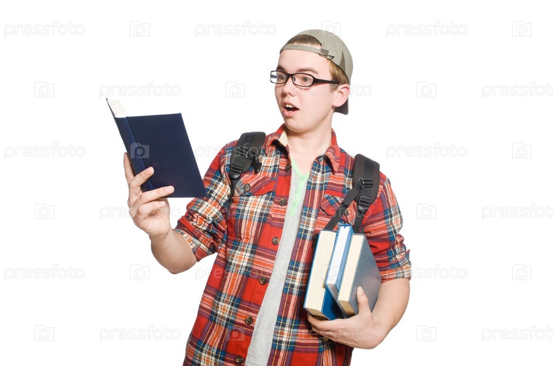 Смешной студент с книгами