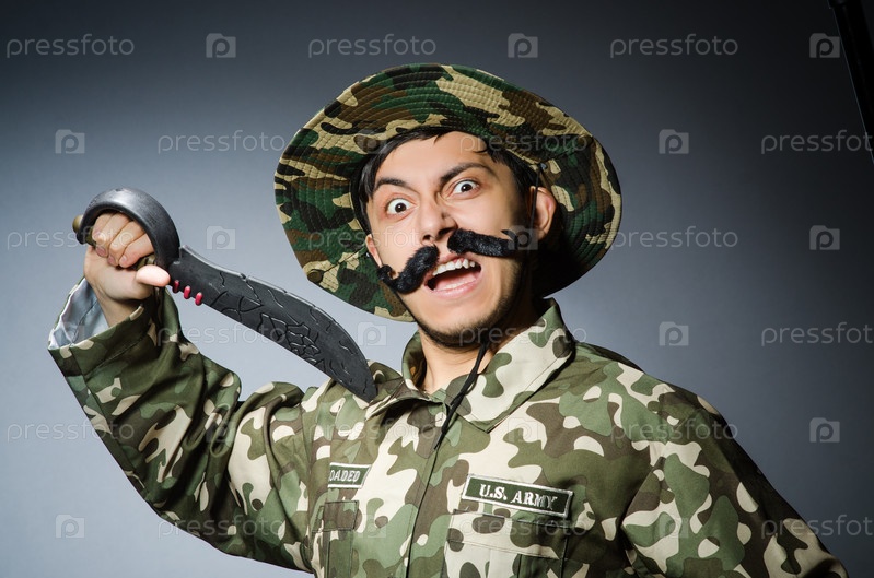 Смешной солдат на темном фоне