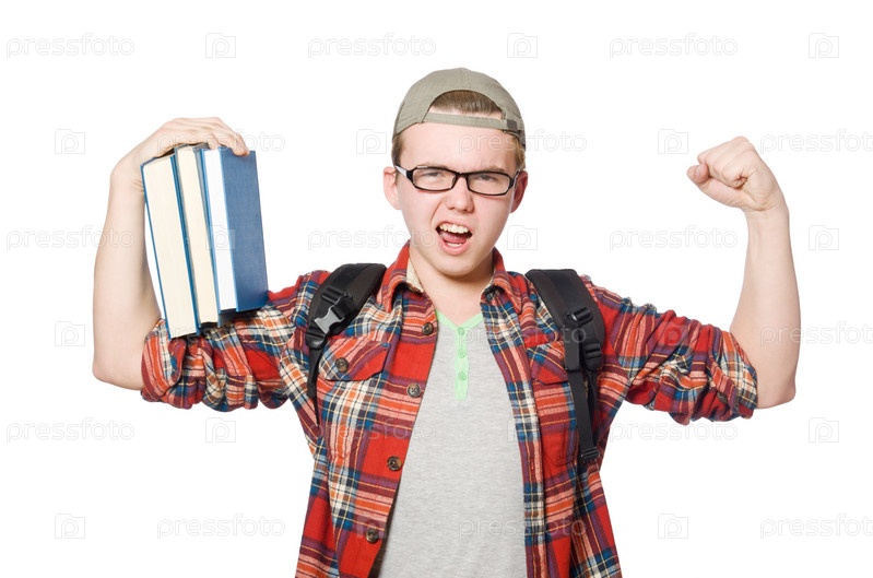 Смешной студент с книгами