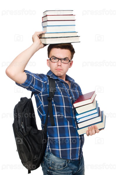 Смешной студент с книгами